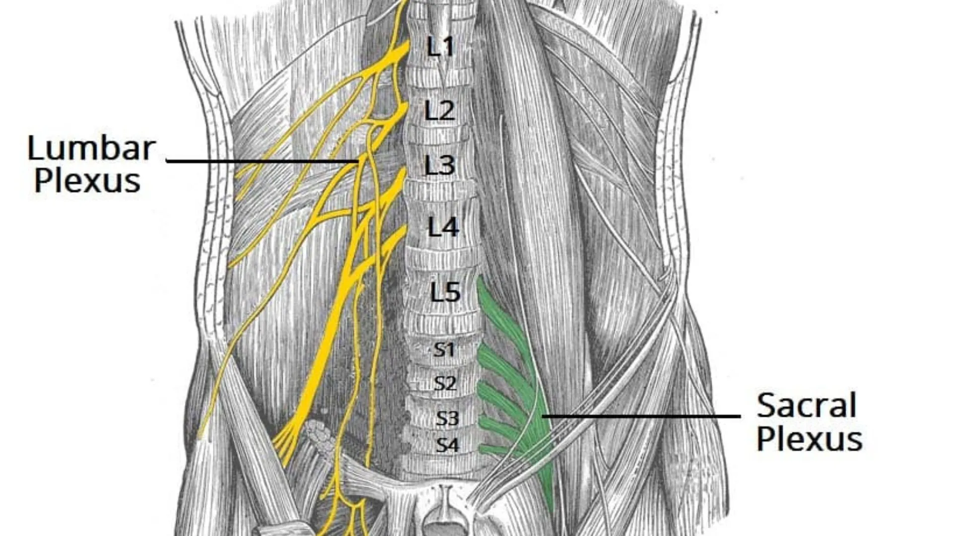 From our clinical perspective, the sacral plexus is formed by the anterior branches of spinal nerves from L4 through S4. The L4 and L5 nerves combine to form the lumbosacral trunk, which descends into the pelvis and integrates with the sacral nerves.